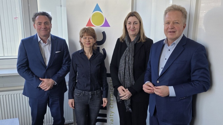 Gemeinsam mit Dietrich von der Wense, Dr. Konrad Otto und Verena Meyer bei Innospec Leuna GmbH im Gespräch.